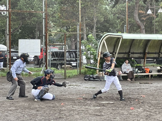 ですが、中止になるほどの土砂降りでもなく、降ったりやんだりの天気で試合は決行!!